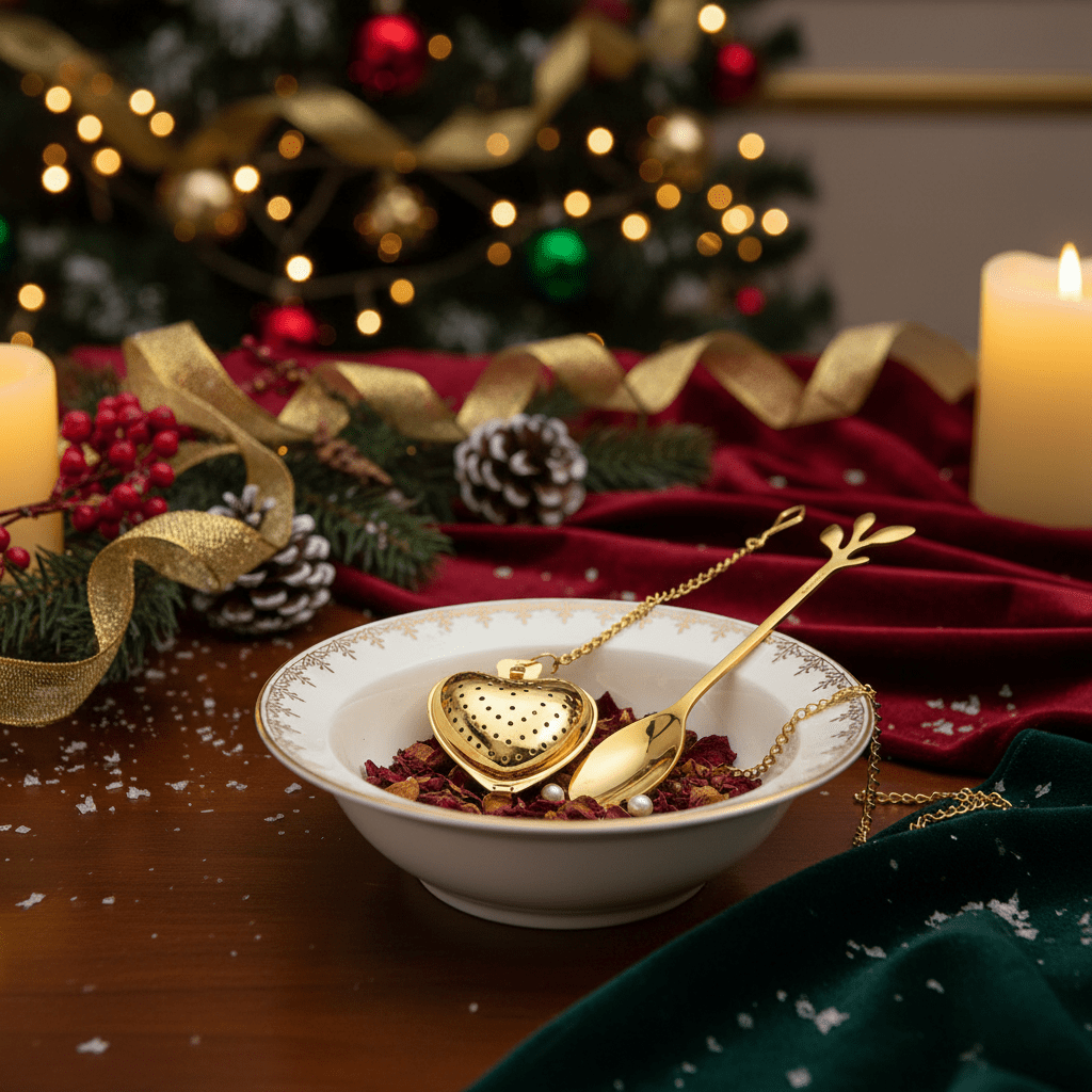 ❤️ Sitko na čaj v tvare srdca + čajová lyžička Elegantné doplnky pre prípravu dokonalého čaju, ktoré dodajú každému čajovému rituálu nádych romantiky a vianočnej mágie.
