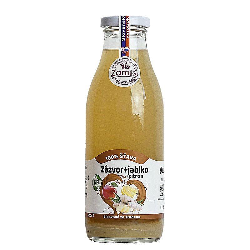 Zázvorovo-jablková šťava pochádza zo Slovenska. Plody spracúvame priamo na našej Zamio farme.
